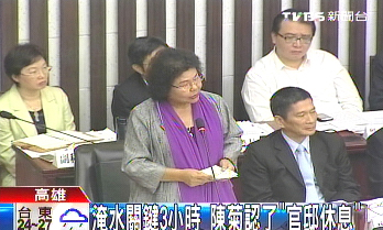 市議員王齡嬌引用高雄市政府28日上午公布的陳菊救災(zāi)行程,質(zhì)疑陳菊沒有坐鎮(zhèn)防災(zāi)應(yīng)變中心。市議員梅再興質(zhì)詢陳菊返家之后做什么?陳菊說,回家后打開電視關(guān)心災(zāi)情。梅再興質(zhì)疑可能眼睛有“瞇一下”?陳菊坦白說“有”。
