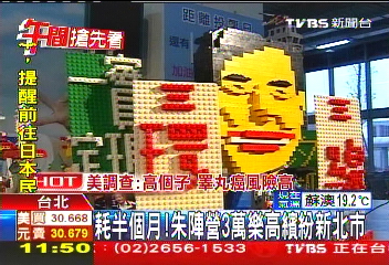 中國臺灣網10月28日消息 據臺灣TVBS電視臺報道,朱立倫陣營的青年軍花費長達15天的時間,用3萬片彩色樂高積木拼出3米高、4米寬的“繽紛新北市樂園”,將新北市的各大重要地標“一網打盡”。今(28)日,朱立倫象征性的拼上最后一塊,并表示非常歡迎民眾來競選總部玩樂高,一起體驗彩色新北市。