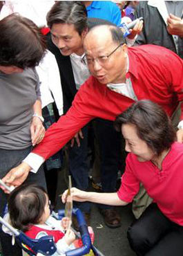 據(jù)“中央社”報(bào)道,國(guó)民黨臺(tái)中市長(zhǎng)候選人胡志強(qiáng)11日起請(qǐng)假投入選舉,首場(chǎng)活動(dòng)即到臺(tái)中市北屯區(qū)金谷市場(chǎng)拜票,國(guó)民黨秘書(shū)長(zhǎng)金溥聰特別陪同,市場(chǎng)內(nèi)“凍蒜(當(dāng)選)”聲不絕于耳。