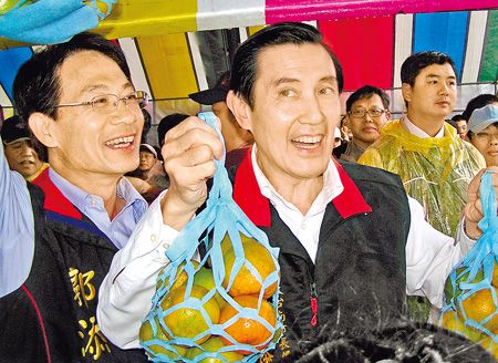 馬英九下午回防北部,陪郝龍斌到臺北市松山健安新城拜票;晚間更深入綠營大票倉臺北縣新莊,為朱立倫站臺,人潮擠爆新莊體育館。(中國臺灣網(wǎng) 陳佳慧)