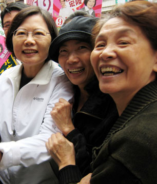 民進(jìn)黨新北市長候選人蔡英文在市場拜票。 圖片來源:“中央社”