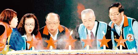 中國臺灣網(wǎng)11月21日消息 據(jù)臺灣《中國時報(bào)》報(bào)道,國民黨116歲生日晚會,昨晚特地移師胡志強(qiáng)競選總部舉行,吸引近萬民眾擠爆會場。國民黨主席馬英九、榮譽(yù)主席連戰(zhàn)、副主席江丙坤、臺當(dāng)局“行政院長”吳敦義、馬英九辦公室秘書長廖了以、前臺中市長林柏榕、彰化縣長卓伯源、南投縣長李朝卿等國民黨重量級人士到場。報(bào)道稱,國民黨A咖(大佬)昨晚在臺中大會師,為胡志強(qiáng)沖人氣。