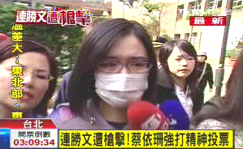 中國臺(tái)灣網(wǎng)11月27日消息 據(jù)臺(tái)灣TVBS電視臺(tái)報(bào)道,連勝文26日遭槍擊后,妻子蔡依珊在第一時(shí)間趕往醫(yī)院了解狀況,每當(dāng)醫(yī)師報(bào)告進(jìn)度時(shí),她都是以淚洗面。所幸連勝文在手術(shù)后,生命跡象總算穩(wěn)定下來,蔡依珊正午時(shí)分在親友陪同下參與臺(tái)灣五市(臺(tái)北市、新北市、大臺(tái)中市、大臺(tái)南市、大高雄市)選舉投票。