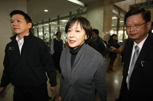 臺北地檢署偵辦臺灣高鐵案,8日以關(guān)系人身份傳喚前高鐵公司董事長殷琪(中),說明高鐵當(dāng)年發(fā)行特別股等過程。 圖片來源:“中央社”