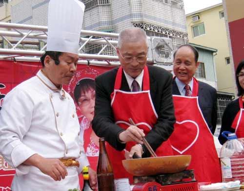 據(jù)“中央社”報(bào)道,臺(tái)“行政院長(zhǎng)”吳敦義16日南下高雄,在“過(guò)年公益、有您真好”活動(dòng)秀廚藝,爆香、熱炒、起鍋,端出香氣逼人的“金雞報(bào)喜”年菜。