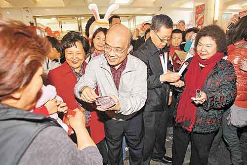 蘇貞昌陳菊發(fā)紅包、春聯(lián)。圖片來自網(wǎng)絡(luò)