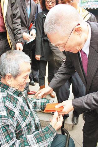 吳敦義訪慈濟(jì)宮 遇親舅給大紅包。圖片來源:臺(tái)灣《中國時(shí)報(bào)》