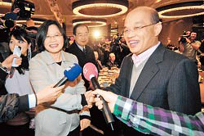 報(bào)道指出,民進(jìn)黨內(nèi)原本浮現(xiàn)一股由“政治聲勢(shì)”最強(qiáng)的蘇貞昌和蔡英文兩人搭檔的聲音,但近日的發(fā)展顯示,難度頗高。以蘇、蔡兩人的強(qiáng)勢(shì)性格,加上“五都”選舉布局不同立場(chǎng)所留下的歧見(jiàn)與心結(jié),恐怕很難樂(lè)觀期待蘇蔡能夠“合體”。