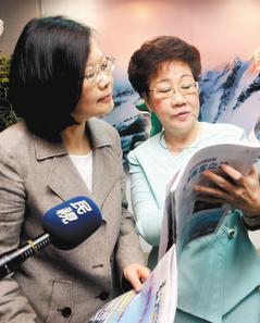 呂秀蓮(右)最近與民進黨主席蔡英文(左)針鋒相對。圖為2009年5月玉山媒體開幕酒會時,兩人互動情形。圖片來源:臺灣聯(lián)合報