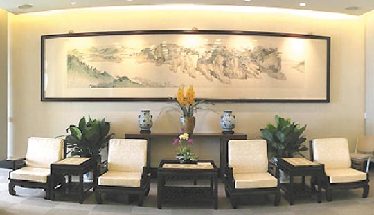 中彈的第一接待室,子彈擊中這幅山水畫畫框左下緣。圖片來源:臺(tái)灣《聯(lián)合報(bào)》