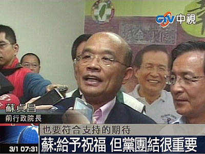 陳淞山指出,“蔡蘇配”聲勢超過“蘇蔡配”,蘇貞昌也不像當年排斥“謝蘇配”一樣,反而不排除“蔡蘇配”,這并不是蘇貞昌愿意屈居副手搭檔,而是他正在醞釀布局參加2012“大選”的政治氛圍。