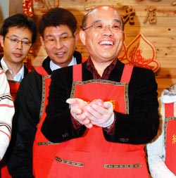 蘇貞昌祝福蔡英文參選臺灣地區(qū)領(lǐng)導(dǎo)人。圖片來源:臺灣《聯(lián)合報》