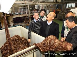 蘇貞昌前往新北市土城區(qū)一家印染廠,并參觀整個(gè)染布的制作過程。圖片來源:臺灣“今日新聞網(wǎng)”