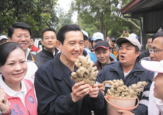 臺灣地區(qū)領(lǐng)導人馬英九昨天(27日)上午到臺南參加國民黨青年部舉行的“百年首登大凍,臺灣幸福啟動”活動,登山途中有民眾還送他一桶山姜,祝他“一統(tǒng)江山”,寓意2012大勝。