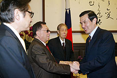 馬英九會見香港景嶺基金會干部。 圖片來源:臺灣“中央社”