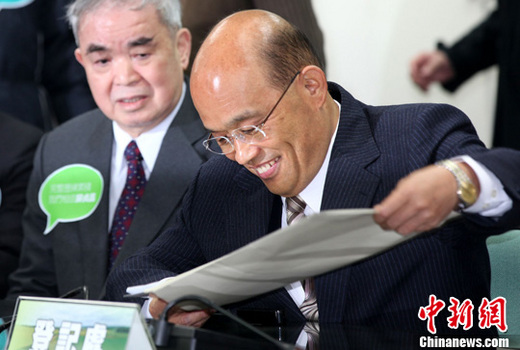 3月23日上午,蘇貞昌(右)來到臺北民進(jìn)黨中央黨部,領(lǐng)表登記參加2012臺灣當(dāng)局領(lǐng)導(dǎo)人選舉民進(jìn)黨黨內(nèi)初選。中新社發(fā) 董會峰 攝