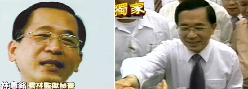 長相酷似陳水扁的人叫林憲銘,媒體曝光此事時他任臺灣云林縣第二監(jiān)秘書。從畫面上看,林憲銘的發(fā)型、眼鏡、笑容和神態(tài),都和陳水扁有9成相似。實際生活中的他比陳水扁頭發(fā)少,身材高。