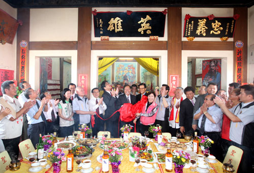 臺南市安南區(qū)鎮(zhèn)門宮,昨舉行馬英九所贈的“英雄”匾揭匾儀式。圖片來源:臺灣中華日報 記者 趙傳安攝