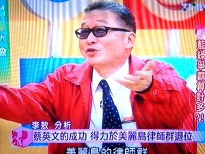 據(jù)報道,李敖上鏡評論2012年臺灣地區(qū)領(lǐng)導(dǎo)人選舉,認(rèn)為臺灣有機(jī)會出現(xiàn)女性地區(qū)領(lǐng)導(dǎo)人,蔡英文是新的形象牌,像是“經(jīng)期不調(diào)的女學(xué)生”,有機(jī)會勝出。李敖此話一出,嚇壞節(jié)目現(xiàn)場一堆名嘴,之后李敖把“經(jīng)期不調(diào)的女學(xué)生”修正為“清純的女學(xué)生”。李敖雖然肯定蔡英文是形象牌,但也很不留情的說,蔡英文是偷走民進(jìn)黨的賊,從既得利益者,也就是美麗島的律師群手中偷走民進(jìn)黨,所以是賊;而且還是“道德的摧毀者”。
