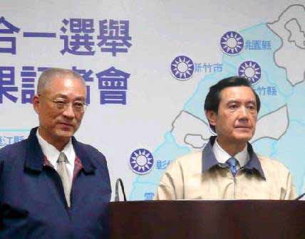 吳敦義(左)擔(dān)任馬英九副手人選后,“內(nèi)閣”將順勢改組。(資料圖片)
