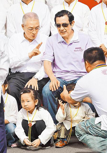 馬英九可望在近日內(nèi)宣布吳敦義為副手提名人,4日兩人互動熱絡(luò)。圖片來源:臺灣媒體