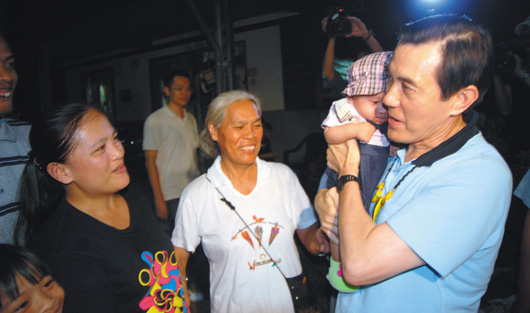 中國(guó)臺(tái)灣網(wǎng)8月7日消息 據(jù)臺(tái)灣《聯(lián)合報(bào)》報(bào)道,臺(tái)灣“莫拉克”風(fēng)災(zāi)即將屆滿兩周年,馬英九6日晚夜宿屏東縣瑪家鄉(xiāng)禮納里永久屋,并逐一走訪瑪家、好茶、大社部落,和村民們?cè)捈页。馬英九經(jīng)過大社部落時(shí),還探視“莫拉克”風(fēng)災(zāi)后的新生兒陳琳,陳家三代同堂迎接馬英九到來。