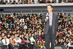鴻海集團總裁郭臺銘14日在逢甲大學(xué)演講暢談企業(yè)及兩岸等議題,吸引數(shù)千名學(xué)生到場聽講。(圖片來源:臺灣《中國時報》)