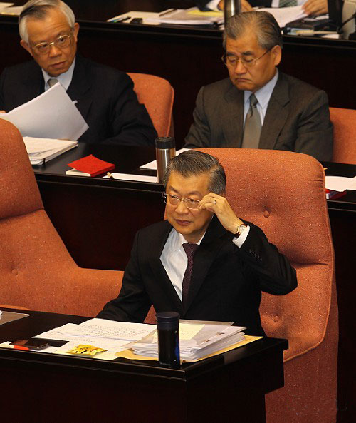 臺當局“行政院長”陳沖(前)順利上臺詢答。圖片來自臺媒