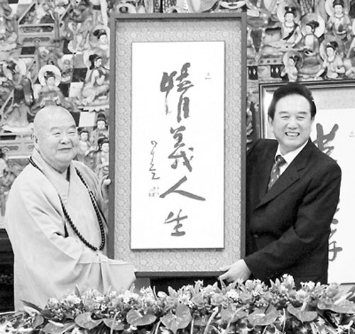 資料圖:星云向陳云林贈(zèng)送書(shū)法作品