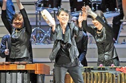 朱宗慶打擊樂團(tuán)《擊度震撼》在臺北小巨蛋演出,結(jié)合舞蹈表演,帶來聽覺與視覺享受。周美青登臺參與演出,掀起高潮,臺下叫好聲不斷。(圖片來源:臺灣《中國時報》)