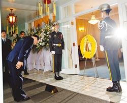 國(guó)民黨副主席、蔣經(jīng)國(guó)之子蔣孝嚴(yán)前往桃園頭寮謁陵。 來(lái)源:臺(tái)灣《中國(guó)時(shí)報(bào)》