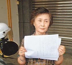 馬英九昨到臺南市探訪外籍修女潘莉安,319槍擊案疑兇陳義雄妻子陳李淑江在場外展示聲明書,要求重啟調(diào)查。(圖片來源:臺灣《中國時報(bào)》)