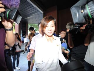 彭愛佳上午9點(diǎn)抵達(dá)臺檢方特偵組。圖片來自臺灣“中央社”