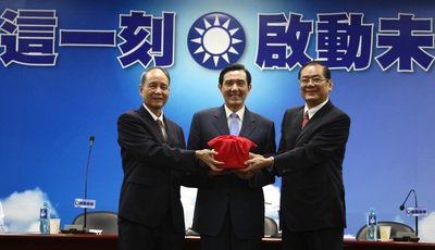 圖中左一為林中森,右一為曾永權(quán),中間位馬英九。圖片來源:臺灣“中央社”