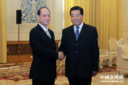 中國臺(tái)灣網(wǎng)10月17日北京消息 中共中央政治局常委、全國政協(xié)主席賈慶林17日下午在人民大會(huì)堂會(huì)見了;鶗(huì)新任董事長(zhǎng)林中森。(記者 陳佳慧)