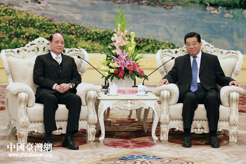 中共中央政治局常委、全國政協(xié)主席賈慶林17日下午在人民大會(huì)堂會(huì)見了;鶗(huì)新任董事長(zhǎng)林中森。(中國臺(tái)灣網(wǎng) 陳佳慧 攝)