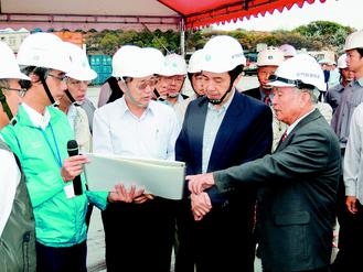 馬英九在多名官員陪同下,前往料羅碼頭到金門醫(yī)院視察施工進(jìn)度,并與多位鄉(xiāng)、鎮(zhèn)長(zhǎng)及里長(zhǎng)座談。