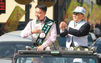 民進(jìn)黨主席蘇貞昌(右)昨天專程南下到臺(tái)中烏日區(qū),陪同“立委”候選人陳世凱(左)拜票。圖自臺(tái)灣《聯(lián)合報(bào)》