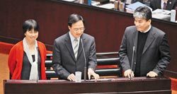 針對(duì)“通奸除罪化”議題,臺(tái)當(dāng)局“文化部長(zhǎng)”龍應(yīng)臺(tái)(左)15日在“立法院”答詢(xún)中表示支持,“行政院長(zhǎng)”江宜樺(中)認(rèn)為可以討論,“內(nèi)政部長(zhǎng)”李鴻源(右)則顯得有些尷尬地表示,他沒(méi)個(gè)人看法。(來(lái)源:臺(tái)灣《中國(guó)時(shí)報(bào)》)