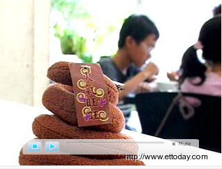 毛巾布做成的便便,卷成一圈又一圈,上頭還停了蒼蠅,小姐看得臉紅,老外看得狂笑,捧著這坨便便又摸又聞的,愛不釋手。