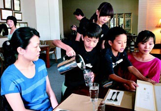 中國臺(tái)灣網(wǎng)7月25日消息 臺(tái)北縣樹林有家外觀典雅的西餐廳,但一推開門讓人嚇一跳,服務(wù)生與廚師平均年齡只有10歲!這群小小服務(wù)生一致穿著黑色制服與圍裙,腰間折掛著整齊的長布巾,小女孩一本正經(jīng)領(lǐng)位,“這邊請(qǐng)”,小男孩遞上菜單,“請(qǐng)問要點(diǎn)什么”?煞有介事拿出紙筆待命。