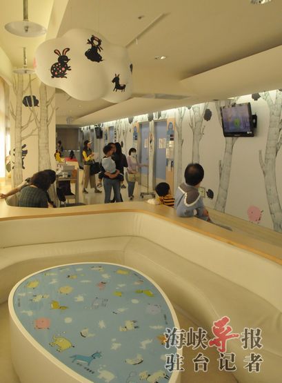 粉色的云狀沙發(fā)、可愛的木馬板凳,一個巨型的永動游戲機……在這里,你聞不到藥水味,也很少聽到哭聲,有看到一次哭聲是因為大人要帶小孩離開醫(yī)院,小孩子迷戀那個永動游戲機,趴在地上看都不想被抱出去。