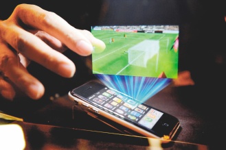 英特爾展示大型觸控廣告牌,讓現(xiàn)實生活更接近科幻片。圖片來源:《聯(lián)合報》