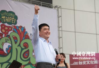 15日下午,由臺(tái)北市長(zhǎng)郝龍斌率領(lǐng)的臺(tái)北市訪問(wèn)團(tuán),在繁華的南京路步行街世紀(jì)廣場(chǎng)舉行了臺(tái)北文化周的開(kāi)幕式記者會(huì)。