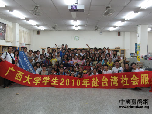 中國臺灣網(wǎng)8月10日桂林消息 2010年桂臺大學生夏令營廣西站將于8月10日開營。來自臺灣大學的25名大學生將分別和廣西大學的30名大學生、廣西柳江高中的45名師生開展署期社會實踐活動。