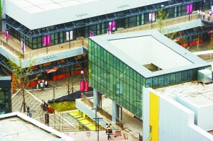 名品城的設(shè)計(jì)和大陸常見的商業(yè)場(chǎng)館不同,各大場(chǎng)館的外觀造型各異,呈現(xiàn)不規(guī)則的“七巧板”形狀,“這給看慣了方方正正建筑的人們帶來(lái)強(qiáng)烈的視覺(jué)沖擊。再加上七種不同顏色的設(shè)計(jì),增加了場(chǎng)館的識(shí)別性,豐富了整個(gè)街區(qū)的建筑造型。”蔡國(guó)峻說(shuō)。