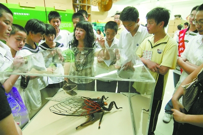 9月17日至11月12日,來自臺灣自然科學(xué)博物館的《鳴蟲特展》在福州科技館舉辦。鳴蟲是指善鳴之蟲,常見的鳴蟲有蟋蟀、蛐蛐等。鳴蟲大多依靠土壤生活,是城市自然環(huán)境保護程度的指示物種。該展通過介紹鳴蟲的發(fā)音目的、發(fā)音方式等,用鳴蟲與人類之間的密切關(guān)系來揭示環(huán)境保護、生態(tài)保護的重要性。據(jù)悉,與展覽配套的相關(guān)科普活動也將陸續(xù)展開,如蟲蟲音樂會、觀展體驗活動以及專題科普講座等。圖為臺灣自然科學(xué)博物館動物學(xué)組博士詹美鈴正在向?qū)W生們講解鳴蟲知識。(吳恩兒)
