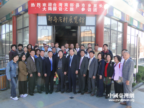 圖為參訪團(tuán)在鄭各莊村展覽館前合影。(中國(guó)臺(tái)灣網(wǎng) 王賽賽 攝)