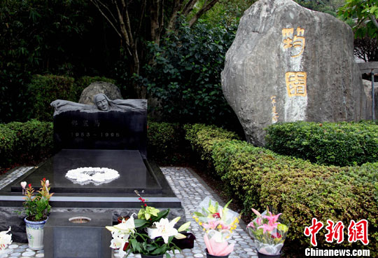 在臺北金寶山鄧麗君墓園,她的黑色大理石墓棺躺在園子最深處,歌迷們供養(yǎng)的百合在墓前散著幽香。墓碑上,簡潔地刻著:鄧麗筠,1953-1995。中新社記者 關(guān)向東 攝