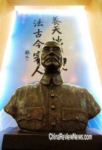 臺(tái)灣“考試院”6日舉行孫中山銅像揭幕典禮,這座“辛亥百年第一尊”的孫中山銅像放置在“考試院”大廳,后方則是孫中山巨幅手書(shū)“養(yǎng)天地正氣、法古今完人”。